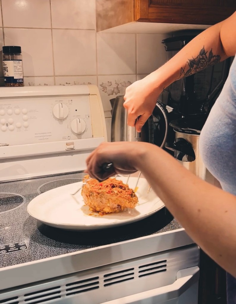 Lastly, you’ll want to complete the sauce with the liquid left in the slow cooker. Paré recommends making the sauce in the crockpot, but I found it didn’t heat up quick enough to thicken the sauce and so I recommend making it in a separate pan on the stove. You’ll want to remove the liquid from the crockpot and add to a pan. Combine cornstarch and water in a small cup until smooth and add the liquid slowly to the pan and stir well while cooking the mixture on med-high heat. Bring to a boil and stir until desired consistency has been reached.