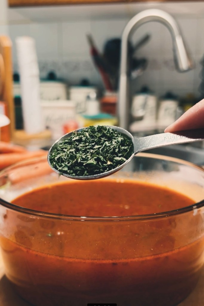 Next, you’ll want to combine the ingredients for the pesto wine sauce, mixing together wine, water, pesto, parsley, rosemary, oregano, and pepper. Once you’ve made your mixture, pour it over the roast and veggies in the slow cooker and cover. Cook on low for 8 to 10 hours or on high for 4 to 5 hours (I decided to cook on high for immediate gratification).