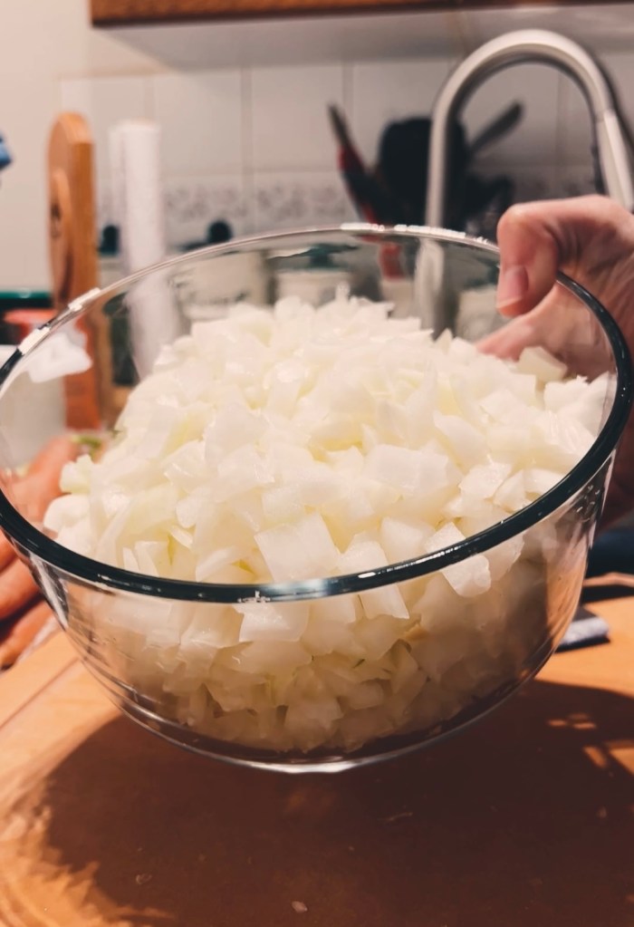 - 2 Medium onions, chopped (Paré recommends 3, but I found it was a bit much)